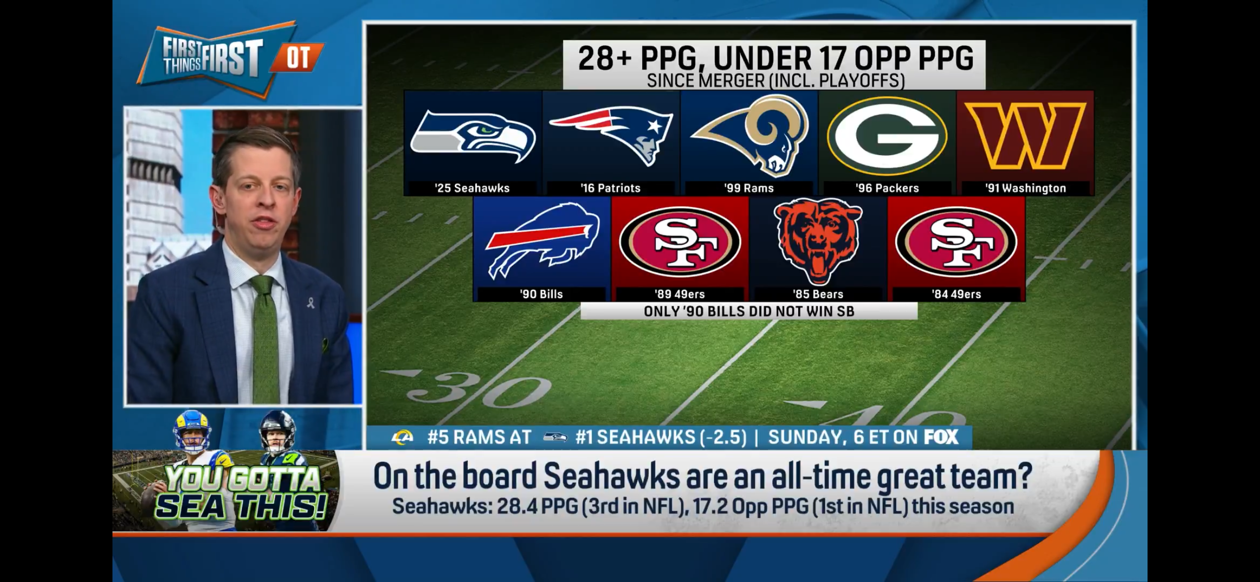 As far as point differential, this team is among the all-time greats, MFer’s!!! That’s the Tom Brady dynasty Pats, the Greatest Show on Turf Rams, the Brett Favre and Reggie White Packers, the Jim Kelly Bills, Joe Montana 49ers and the ’85 Bears (generally considered one of the greatest defenses ever assembled). The Darrell Green and Gary Clark ’91 Washington team was the least renowned… and they still won the GAWDAM Super Bowl!!!